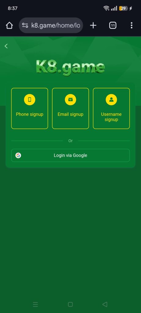K8 Game is an online casino-style Android application.